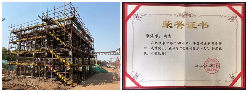 2020419日,江蘇分院總承包的南京金江冶金爐料有限公司原料廠一混勻增設布袋除塵器項目土建主體工程順利封頂,項目經理李海華榮獲南鋼集團頒發的優秀相關方個人稱號。